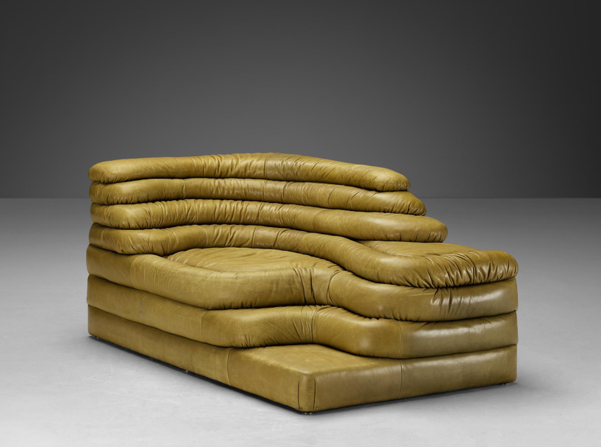 Ubald Klug for De Sede 'Terrazza' Landscape in Olive Green Leather