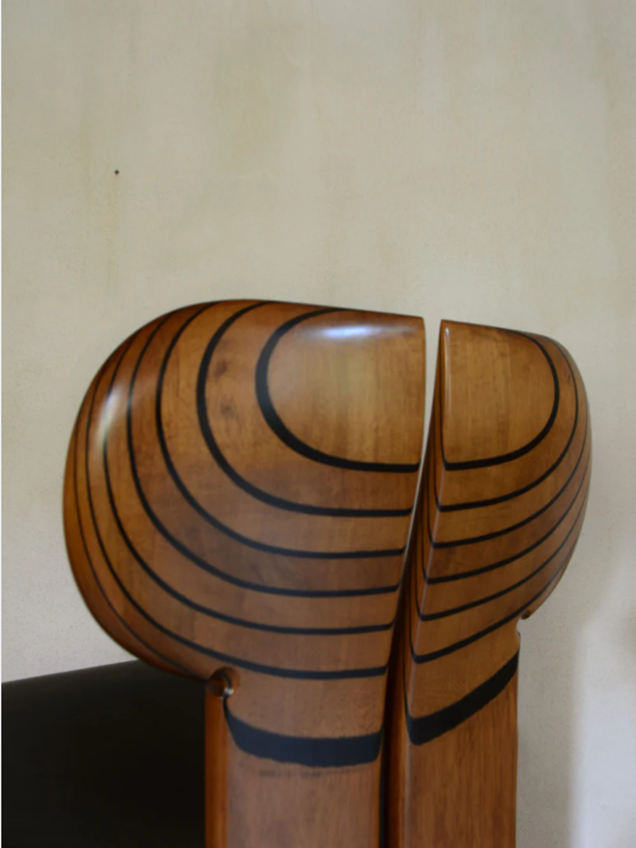 curved plywood seat, leather.