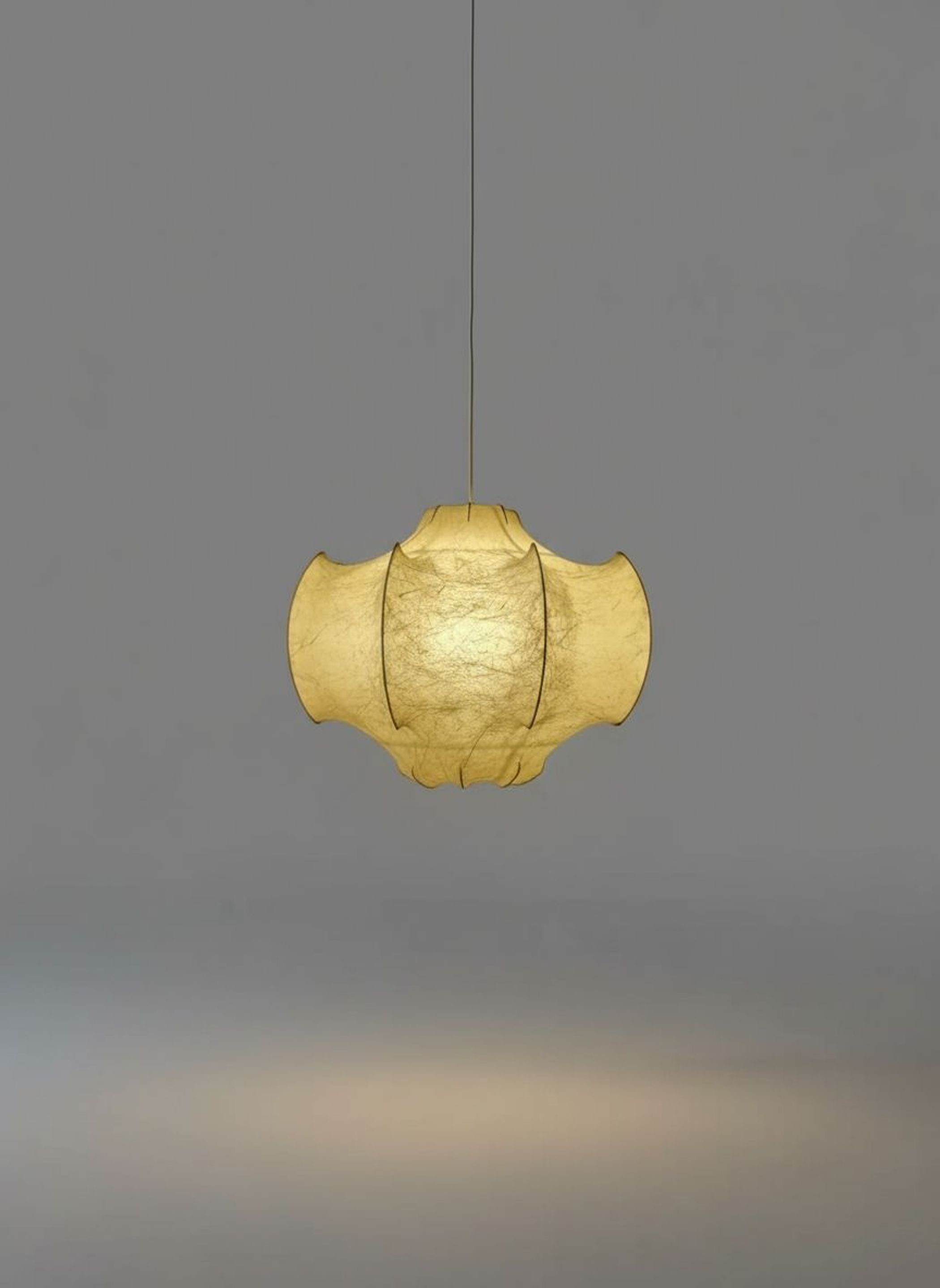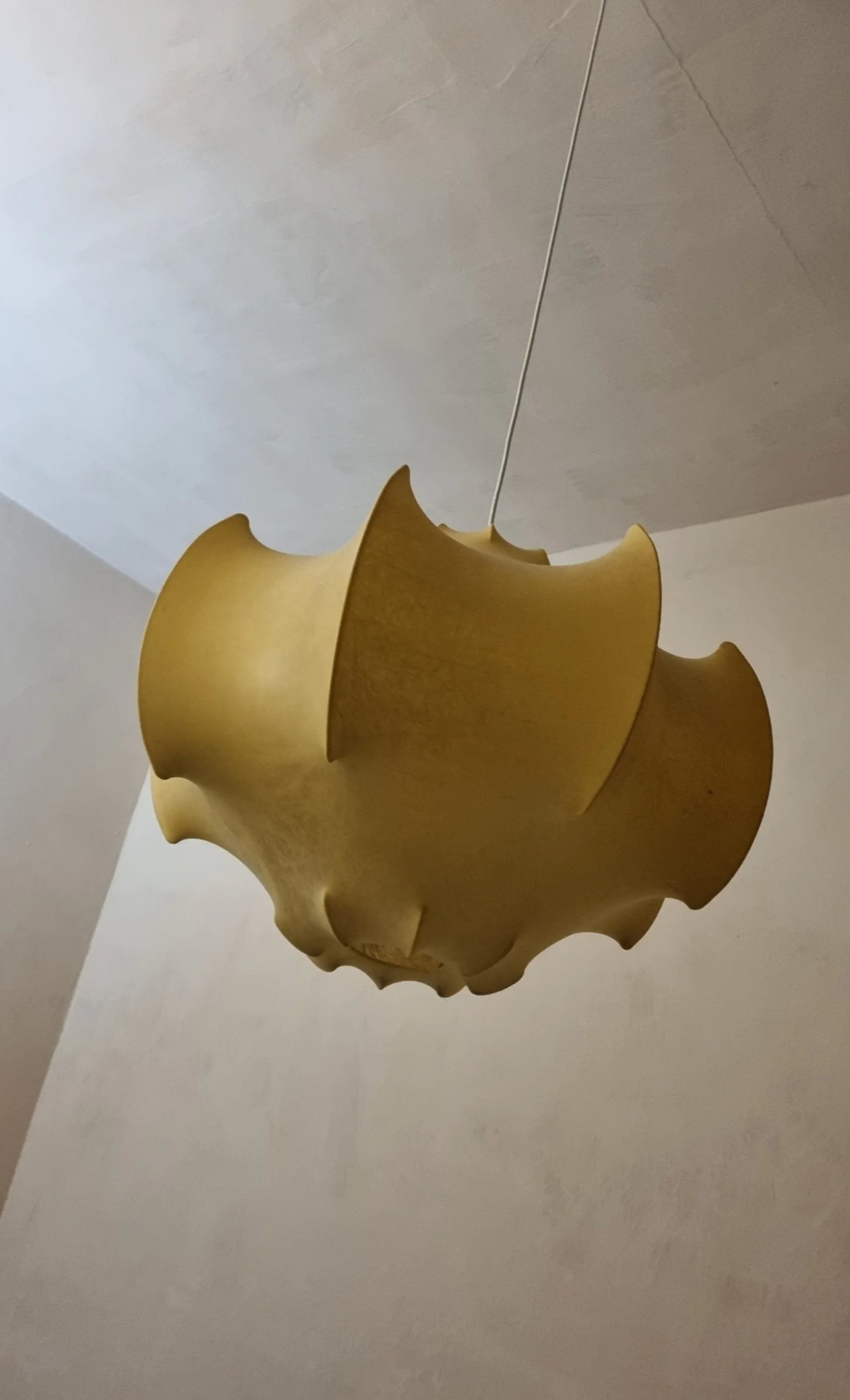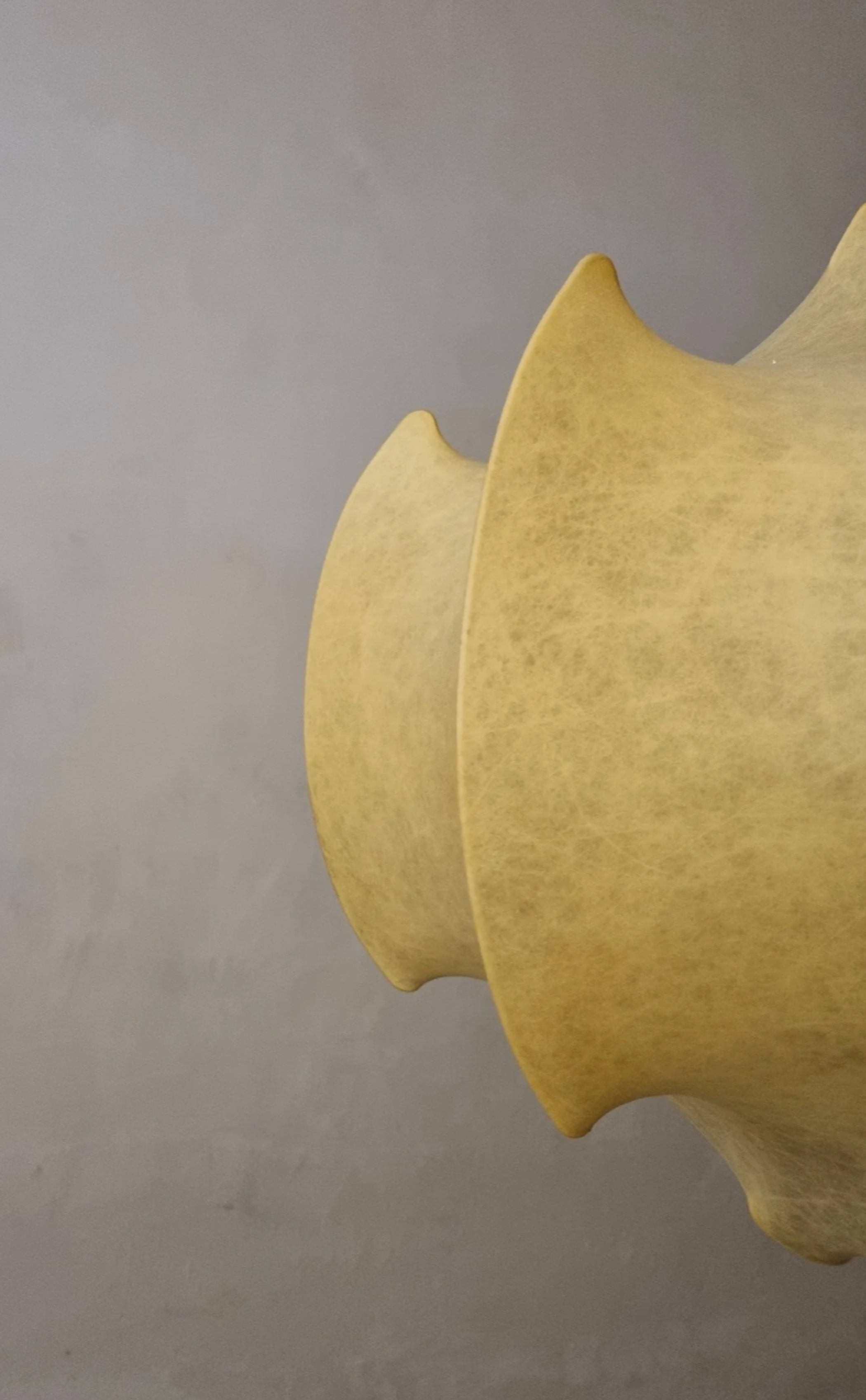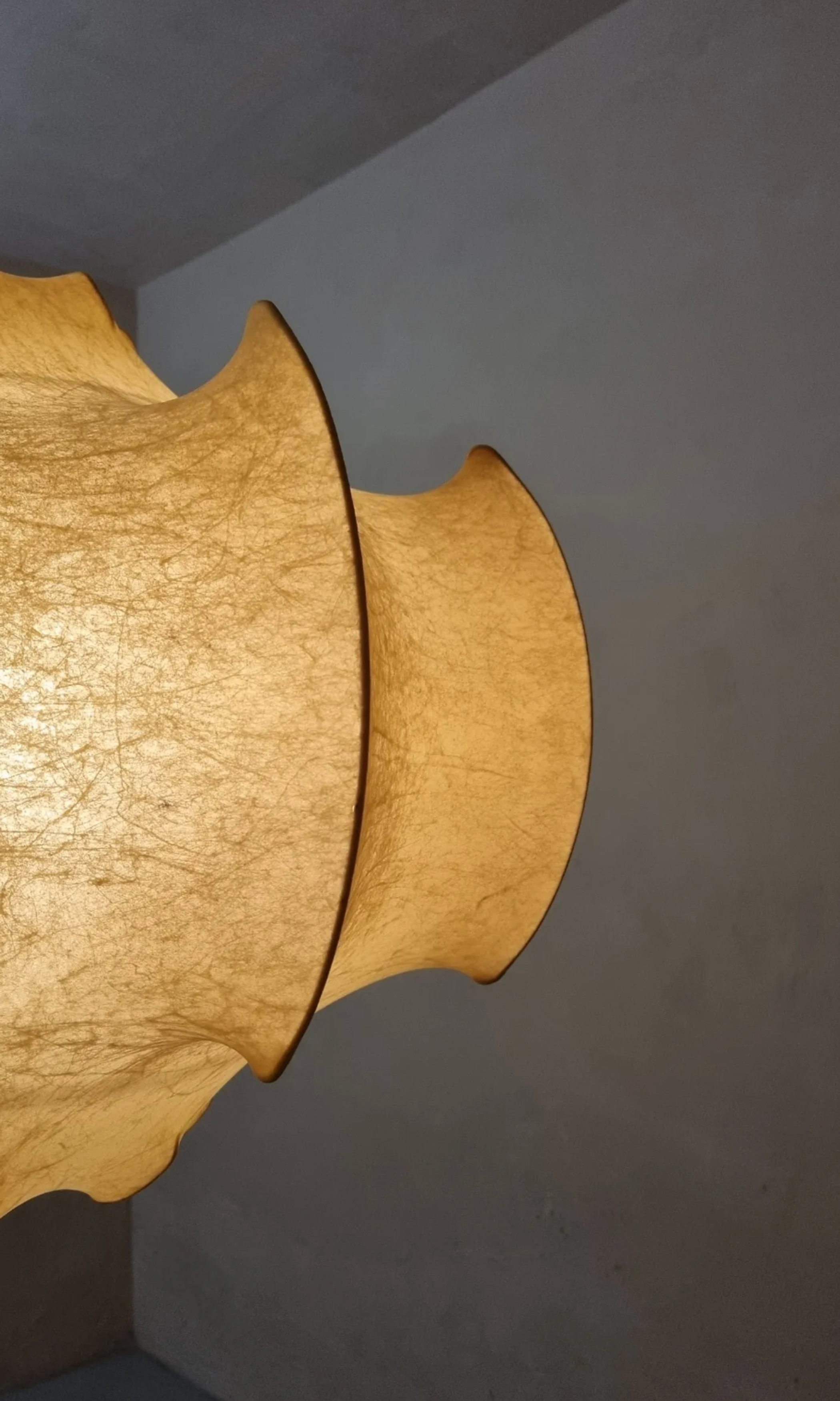 Cocoon Viscontea Suspension Lamp designed by Achille and Pier Giacomo Castiglioni for Flos, 1960s. White coated internal structure, sprayed with special cocoon resin. This light is a first production piece in excellent condition.
