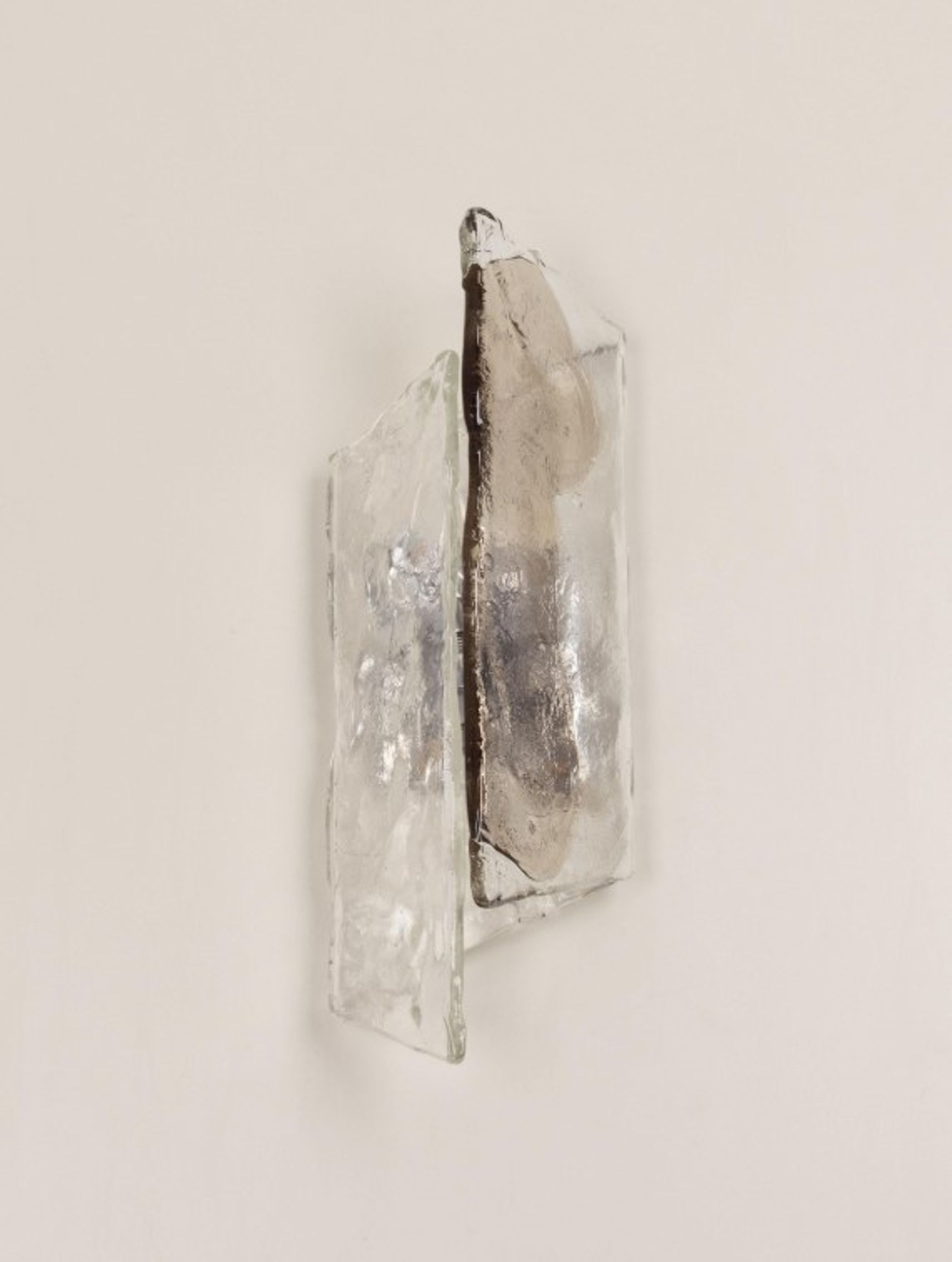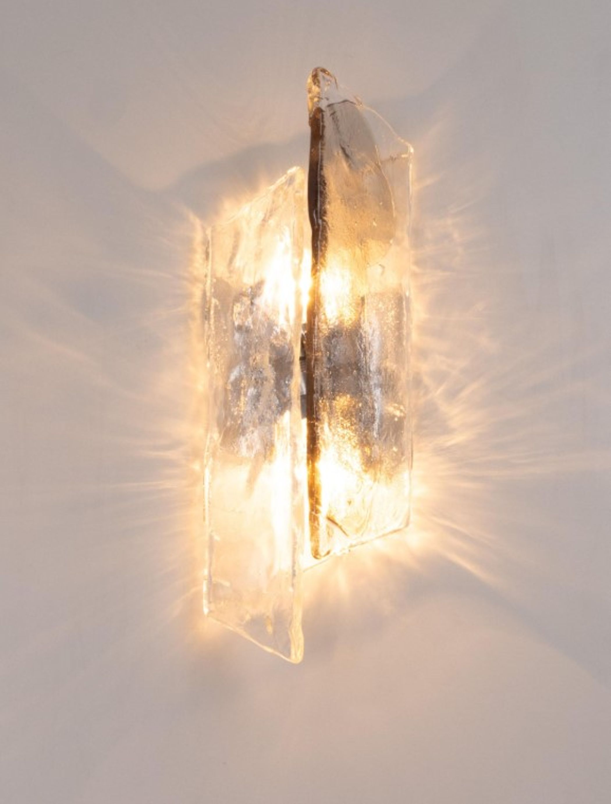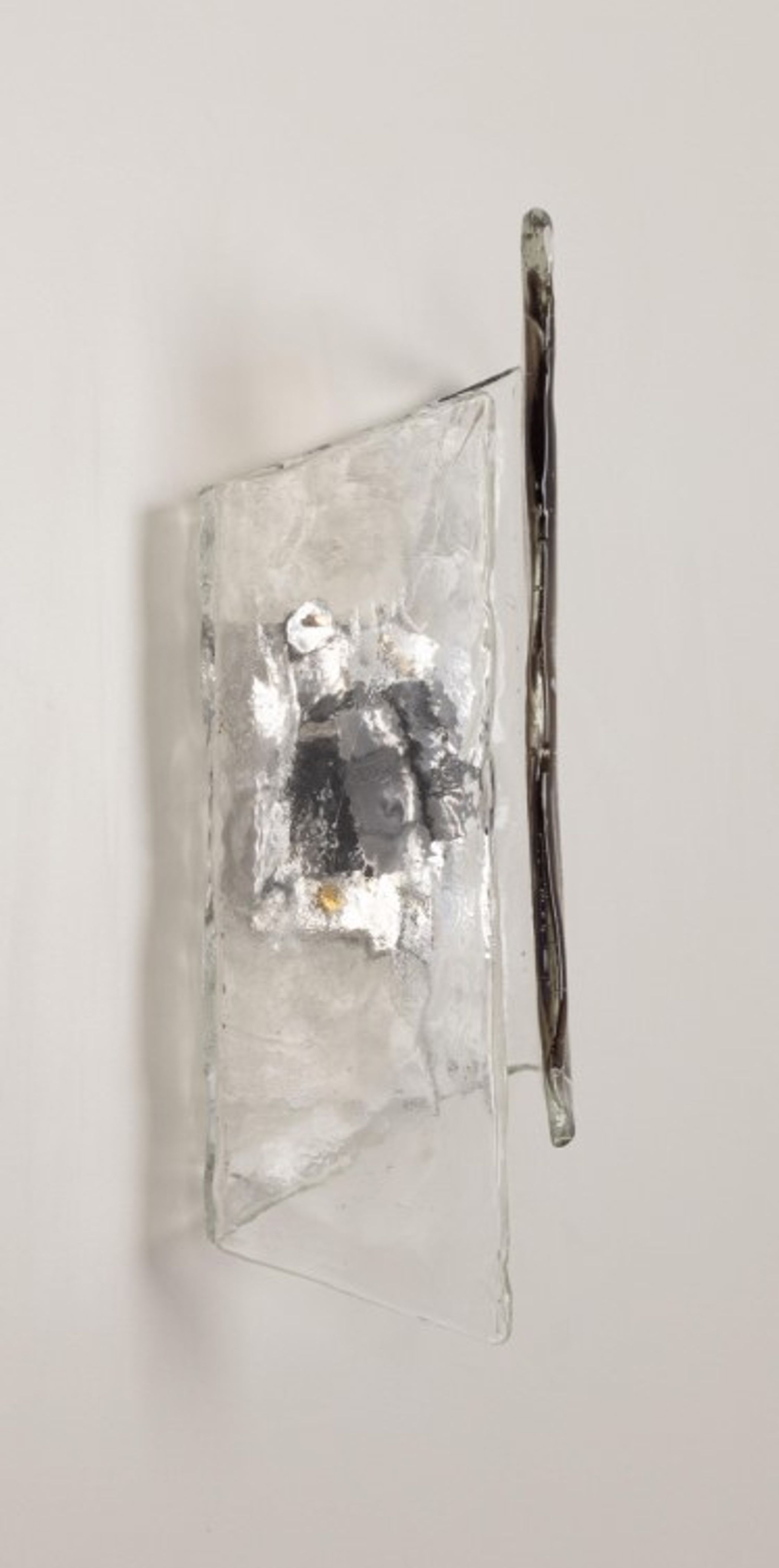 Mid-century wall sconces by J.T. Kalmar, Austria, circa 1970–1979. Featuring handcrafted Murano glass elements set on a chrome base. Presented in very good condition—professionally cleaned and rewired, ready for use. Wall lights sold individually or in a pair.